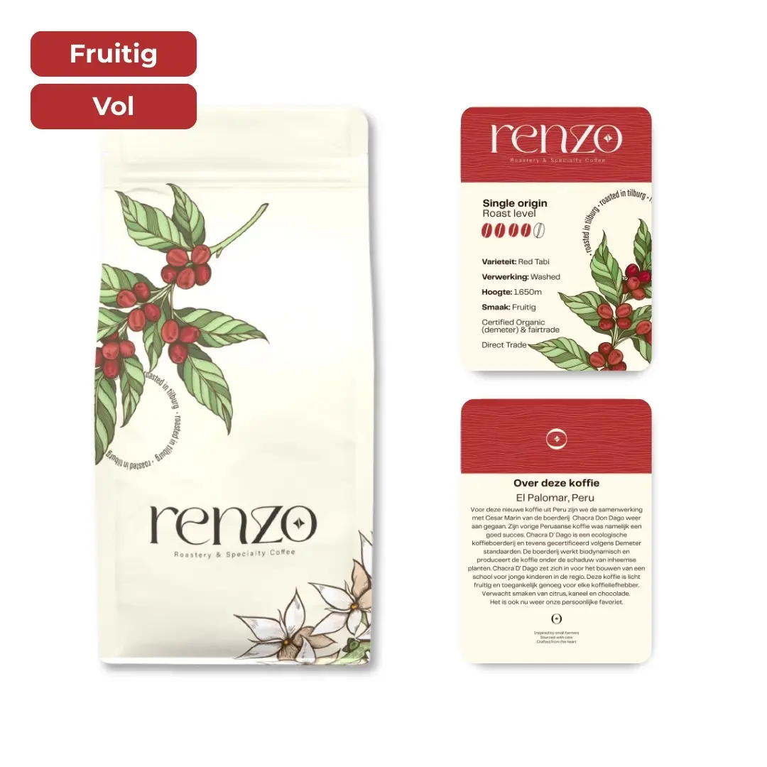 Op een hoogte van 1600 tot 1800 meter boven zeeniveau, in de hooglanden van El Palomar, Peru, ligt Chacra D Dago, een kleinschalige, door familie gerunde koffieboerderij die zich volledig toelegt op het produceren van uitzonderlijke koffie in harmonie met de natuur. Onder leiding van Cesar Marin en zijn familie weerspiegelt de boerderij generaties van toewijding, diepgaande agrarische kennis en respect voor het land.